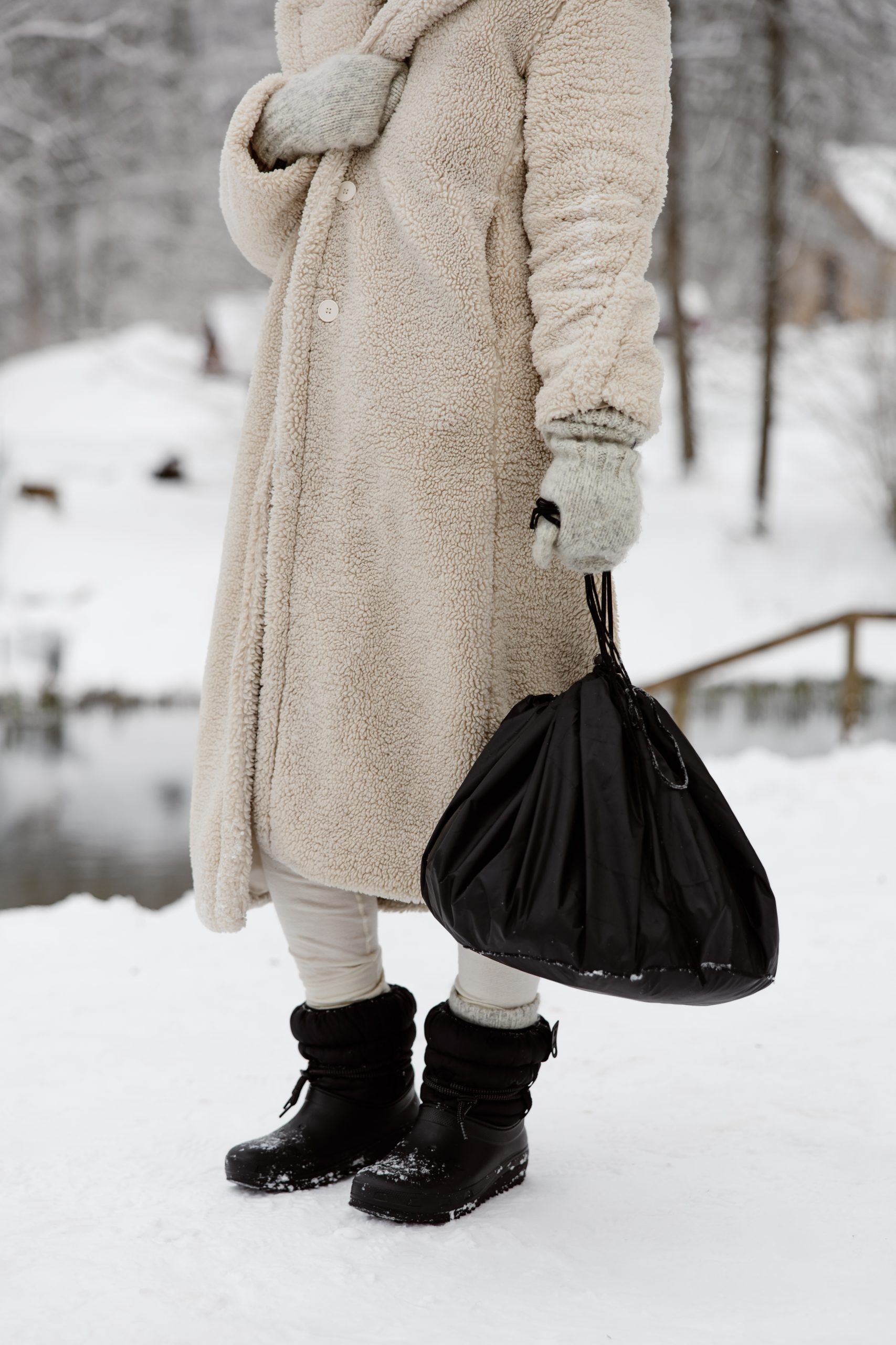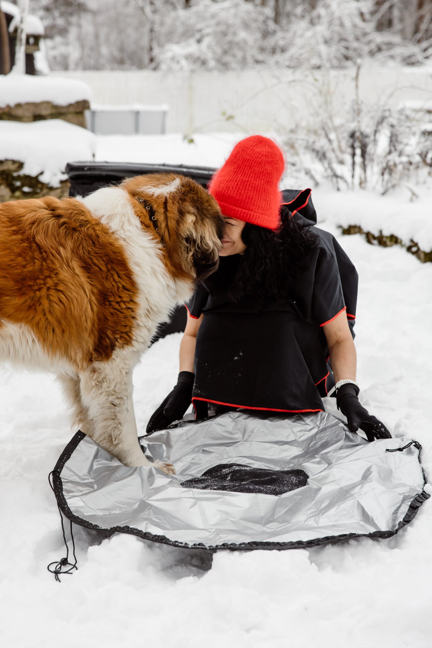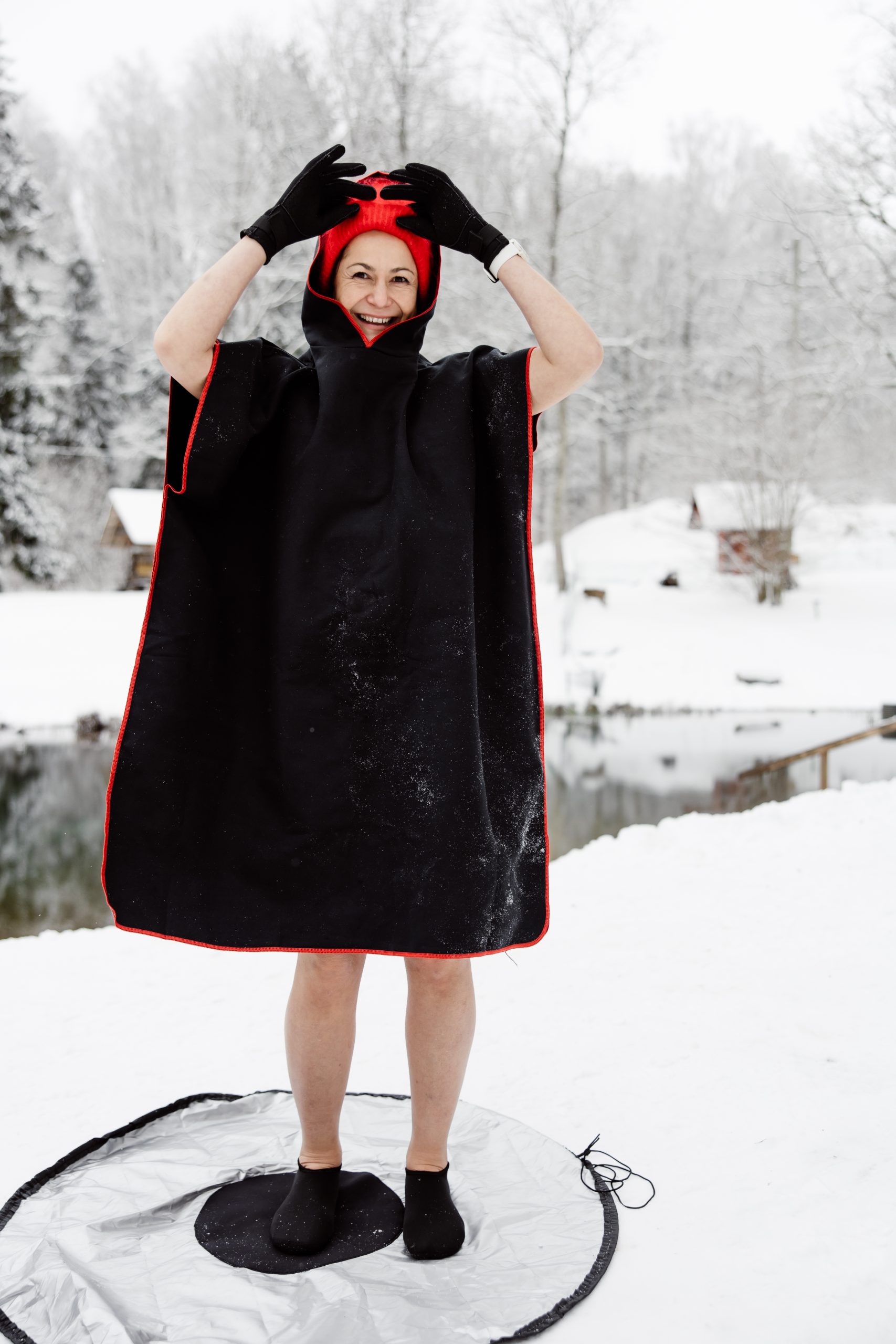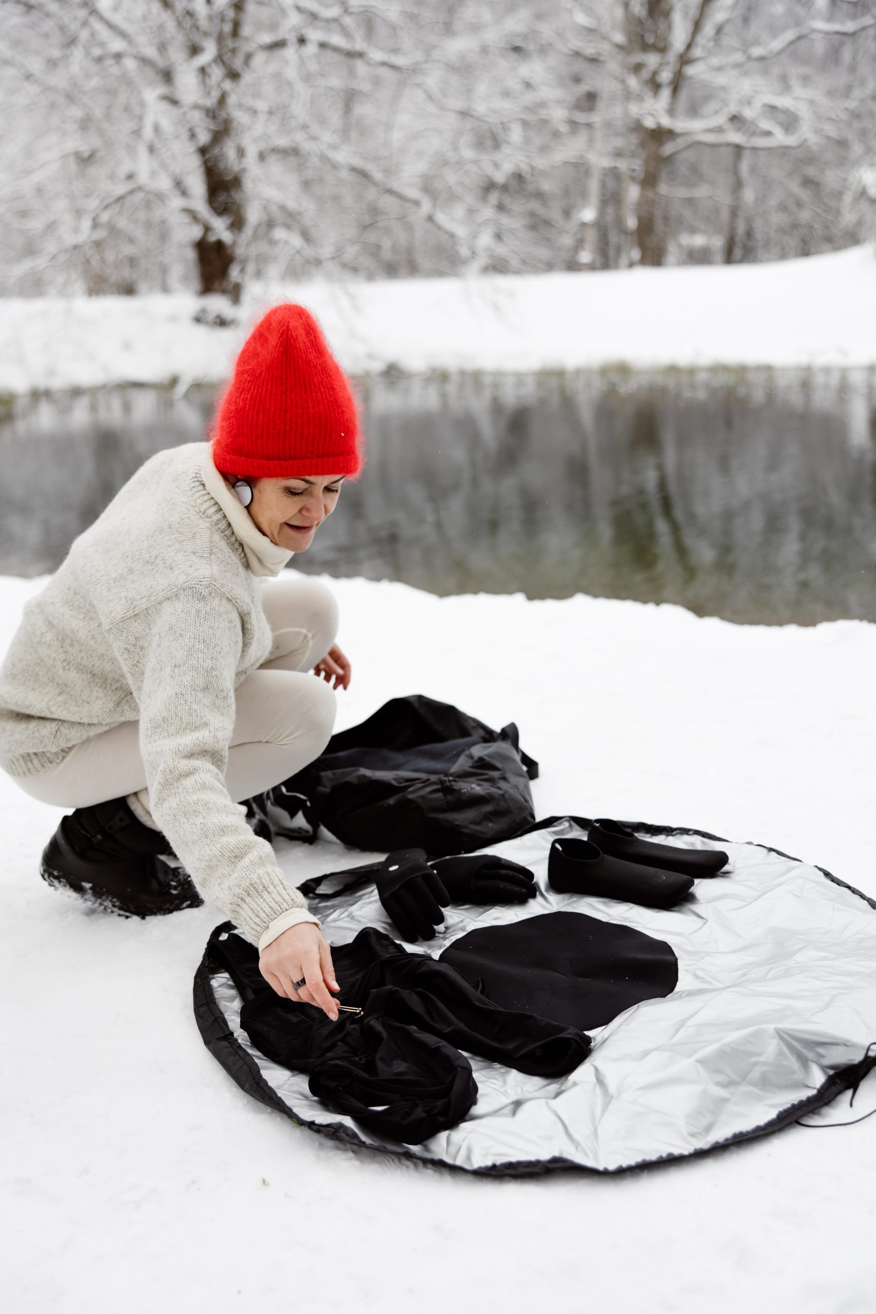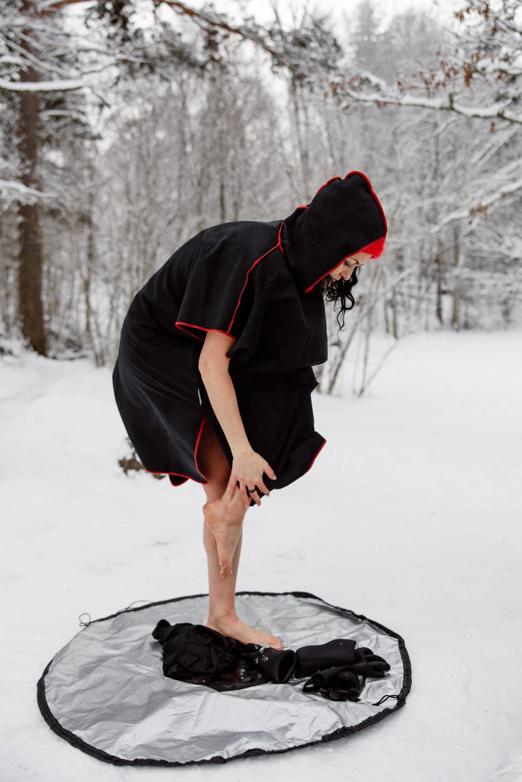 Pārģērbšanās pie ūdenstilpnes ir ērta un ātra, izmantojot ūdens izturīgu neioprena materiāla paklāju/somu 90 cm diametrā, kas aiztur aukstumu un mitrumu no zemes. Uz tā var ērti pārģērbties un saslapinātās peldlietas, čības, dvieli atstājot uz tā. Kad sausais apģērbs ir mugurā, paklāju var pārvērst par pārnēsājamu somu miitrajām peldlietām. Arī smilšainās pledvietās inventārs paliks tīrs no smiltīm. Sniegā nesals pēdas un arī ietaupīs līdzi ņemamo lietu skaitu – nav vajadzīgs atsevišķi paklājiņš uz kā pārģērbties.